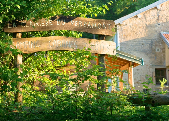 Les hébergements insolites du camping sont éco-conçus. La conception et la fabrication des cabanes sont réalisées en interne à partir de matériaux locaux. À la Clairière du Verbamont, les voitures restent sur le parking. Ici, les petits-déjeuners vous sont apportés en vélo : idéal pour préserver votre tranquillité et celle des espèces présentes sur le site. Goûtez à la cuisine locale. Visitez le jardin cultivé en permaculture et dégustez le bon goût des légumes et des confitures maison ! La Clairière est aussi une table d'hôtes : les repas préparés peuvent être adaptés au régime végétarien.