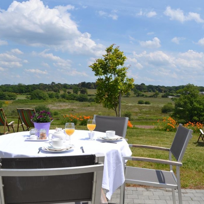En pleine nature, sur un parc de 2 hectares, venez vous ressourcer et vous détendre dans un lieu écoresponsable avec pour horizon des prairies, des espaces boisés où se mêlent la faune et la flore du Golfe du Morbihan.