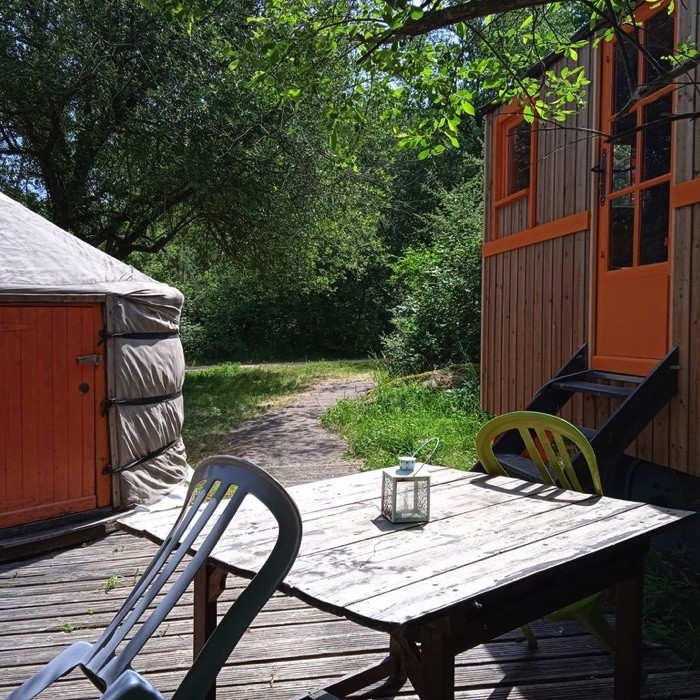 Loin des habitats traditionnels, vous allez vivre un profond dépaysement, pas d’eau courante ni électricité mais une proximité avec la nature inégalable. Toilettes sèches, entrée indépendante depuis la terrasse.