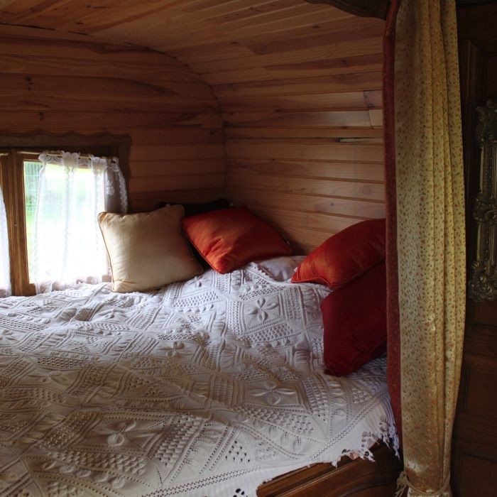 Conçue par un vannier à l’identique de ce qu’il a connu dans son enfance, son intérieur tout en bois lui confère un esprit rustique et chaleureux. L’envie de voyager au rythme lent d’un cheval de trait aurait vite fait de vous gagner