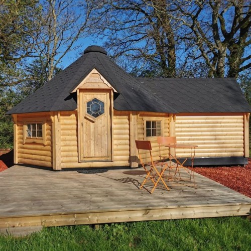Profitez du calme de la campagne à deux pas de la mer Bretonne, le Domaine de Kérizel vous accueille dans un kota finlandais à côté de leur longère nichée sur un terrain de 16000m2, à 5 min des plages et des commerces.